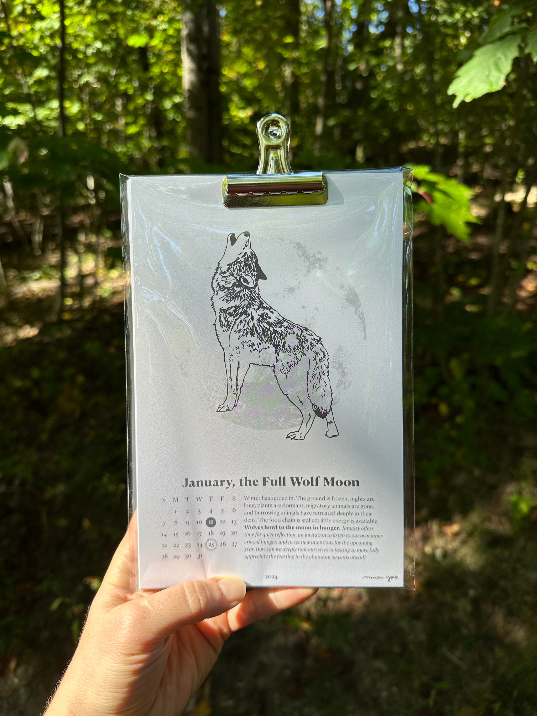 2024 FULL MOON Calendar Featuring Hand drawn Illustrations